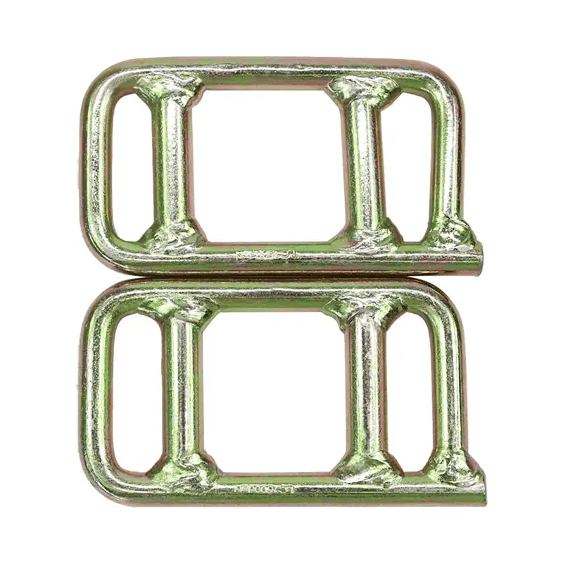 焊接式目字打包扣结构紧凑,表面镀锌防锈,轻便耐用,性价比高。适用于涤纶带、编织带等货物加固包装。