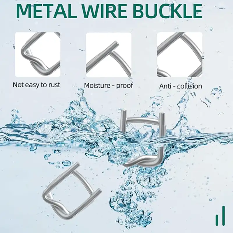采用优质碳钢并经磷化防锈处理,专为涤纶编织打包带和复合纤维打包带设计,具备高强度咬合力和持久耐腐蚀性能。