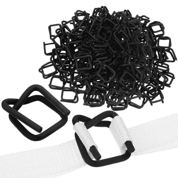 重载磷化打包扣 采用高碳钢材质并经热处理强化,适配25–50mm宽涤纶编织带。