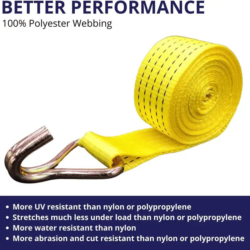 2英寸(50mm)重型棘轮拉紧带,采用高密度聚酯纤维织带与钢制棘轮,工作拉力8800LBS(约4吨),断裂强度高达10000LBS。配备双J钩设计,稳固防滑,耐磨防锈,适用于卡车、拖车、摩托车、皮划艇及仓储运输固定。支持OEM定制长度、颜色与LOGO,工厂批发价供应。