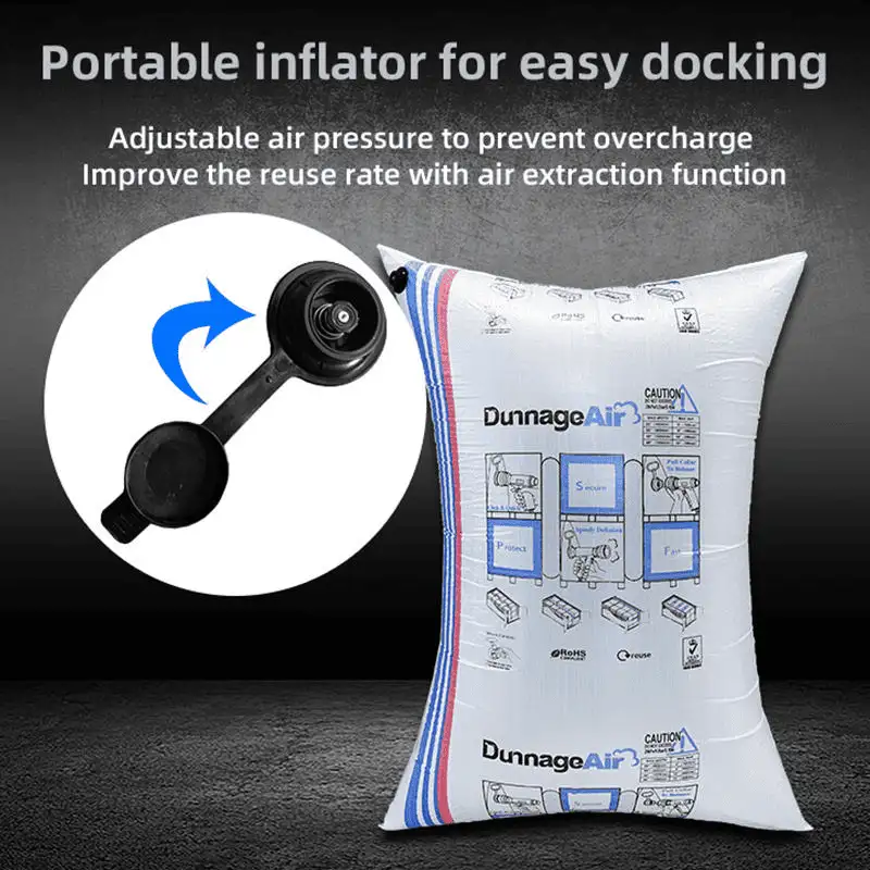 配备快速充放气专利阀,可调气压、反复使用,适用于海运集装箱、铁路与公路运输。支持尺寸/印刷/阀门类型定制与批量供货。