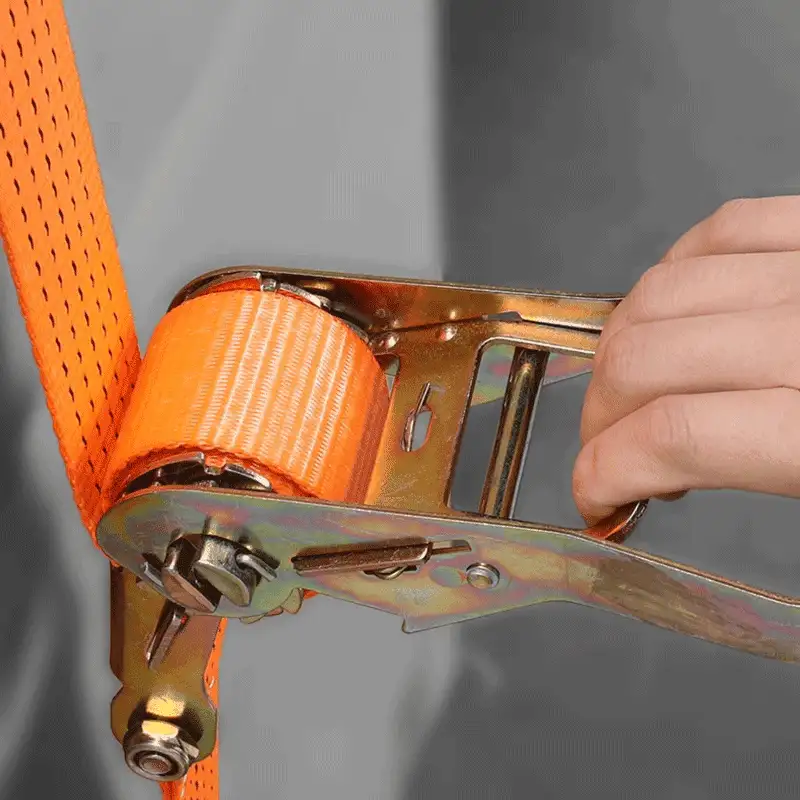 38mm(1.5英寸)高强度聚酯棘轮拉紧带,断裂强度高达5000LBS(约2270kg),通过GS认证。采用双J钩结构与镀锌防锈棘轮扣,耐磨、耐腐蚀,适用于货运、仓储、工业运输与户外固定。支持OEM定制颜色、LOGO及批发订单。